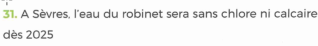 Son programme « Vers une eau pure, sans calcaire et sans chlore » (osmose inverse basse pression) est en cours avec des mises en service annoncées à partir de fin 2027 — pas en 2025 !