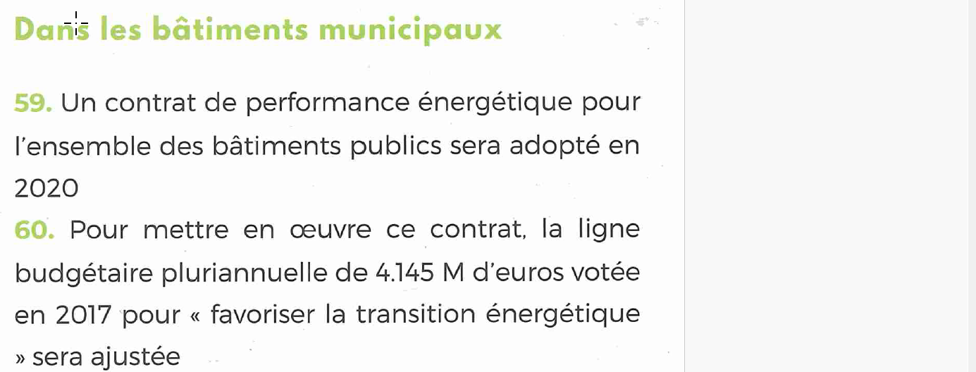 Non seulement cette instance n’a pas été créée mais la transition écologique n’a pas vraiment intéressé le maire sortant. Aucune accélération du programme de rénovation de nos bâtiments publics après la crise de 2023 qui a vu notre facture énergétique annuelle multipliée par presque 4, passant de 740k€ à 2,6M€.